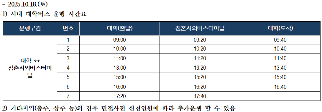 ※ 면접전형 대학 방문자 대학구내식당(별암마루) 점심식사 시간 : 12:00 ~ 14:00(시간 내 자율적 운영)