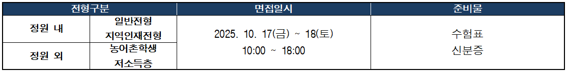 ※ 간호학과 전문대졸이상 전형은 면접 미 실시
