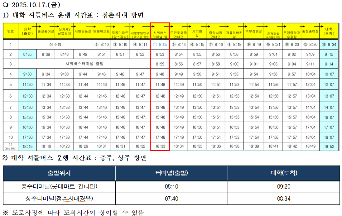 대중교통을 이용하여 면접에 참여하시는 분들은 아래의 버스운행 시간표를 참고 하시기 바랍니다.