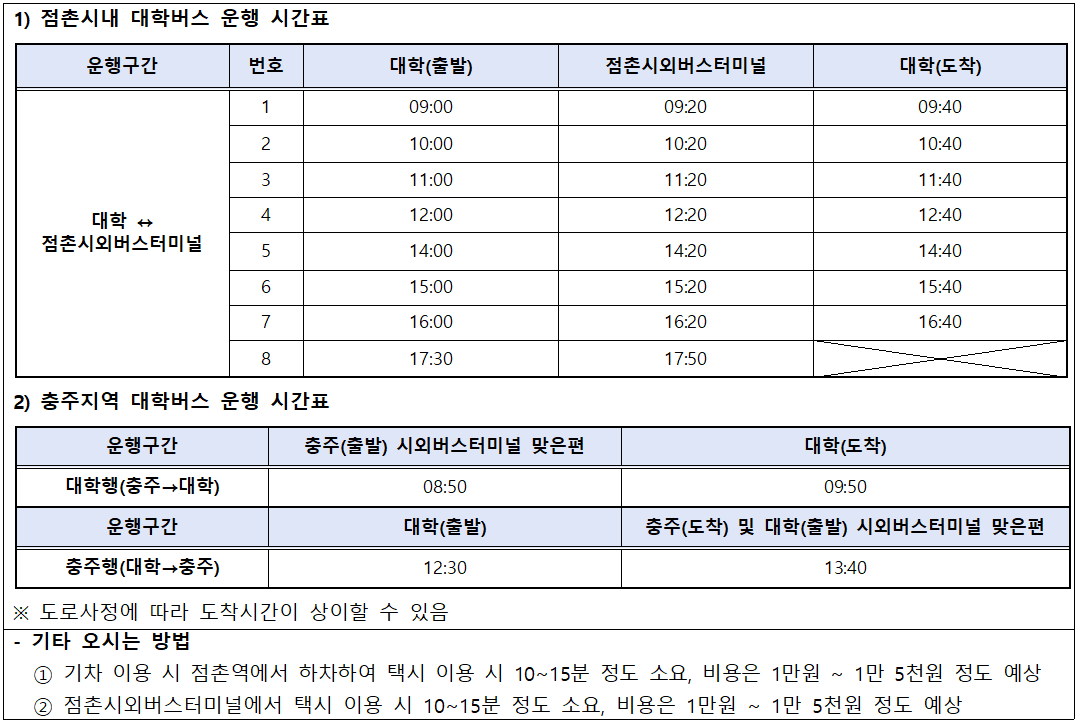 5. 대학차량 운행시간