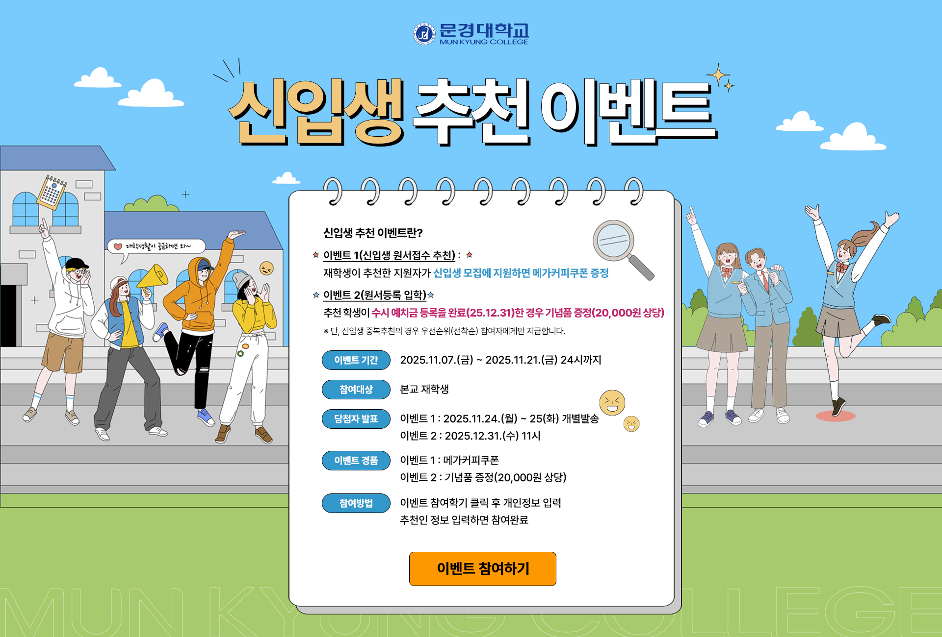 * 수집하는 개인정보 항목 - 수집항목 : 성명, 연락처, 추천인 이름, 추천인 수험번호, 추천인과의 관계 - 수집방법 : 이벤트 응모