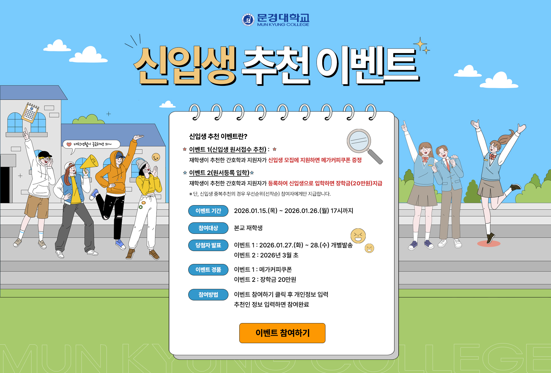 * 수집하는 개인정보 항목 - 수집항목 : 성명, 연락처, 추천인 이름, 추천인 수험번호, 추천인과의 관계 - 수집방법 : 이벤트 응모